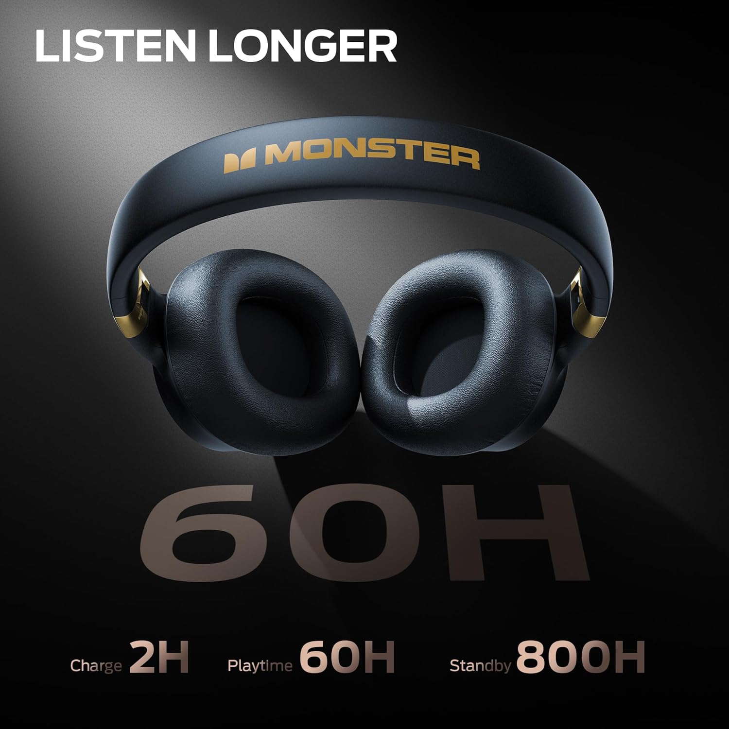 Monster Persona SE ANC Active Noise Cancelling Headphones, Over Ear Bluetooth Headphones Wireless, 60H Playtime, HiFi Stereo Audio, Deep Bass, Built-in Mic, Memory Foam Ear Cups for Home (Blue)